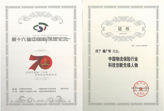 “物流货运险”中国科技创新发明成果奖-铜牌